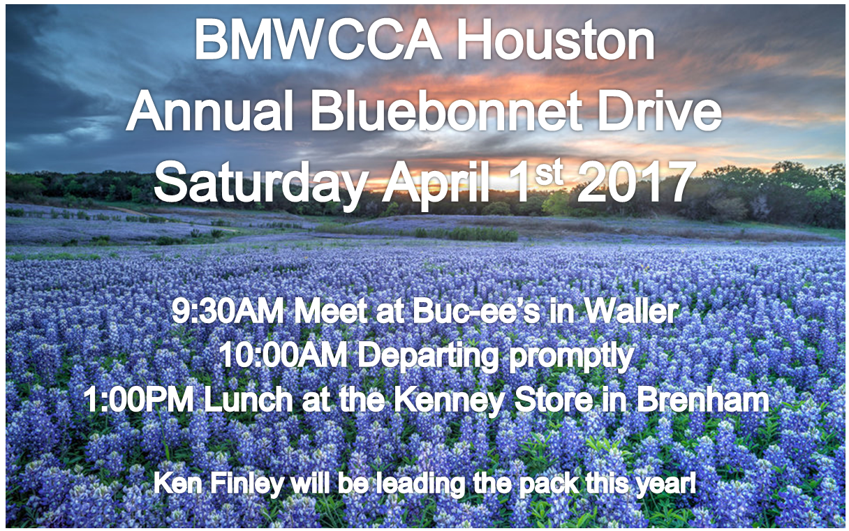 On Saturday, April 1, 2017 we will be going on a drive to see the bluebonnets. Click on the image for more information. Register for this event by entering your name, number of guests, email, cell phone number and vehicle information below.