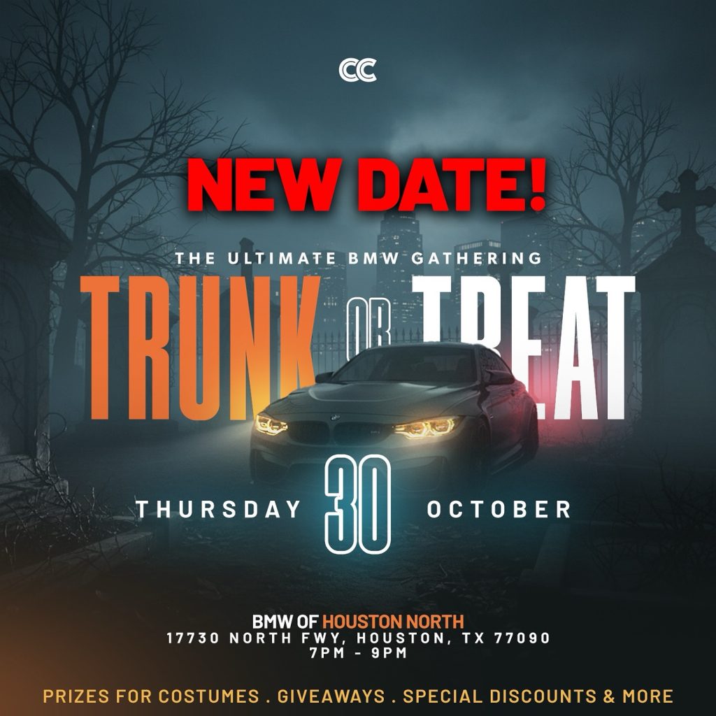Trunk or Treat, New Date! iCal Trunk or Treat, New Date! Date/Time: Oct 30, 20257:00 pm - 9:00 pm REGISTER HERE: https://www.coffeeandcars.net/bmw-ultimate David Meaux2025-10-24T10:10:49-05:00