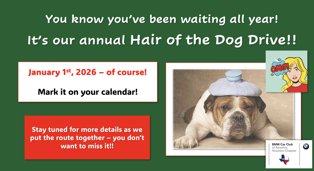 Stay tuned for details on our annual Hair of the Dog Drive!   This will be our 26th year running the most famous HOD in all of Texas!