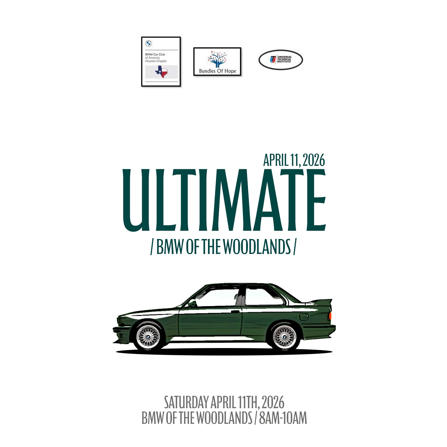 Back to All Events Ultimate Coffee & Cars at BMW Woodlands Saturday, April 11, 2026 8:00 AM 10:00 AM BMW Woodlands 17830 Interstate 45 Conroe, TX, 77384 United States (map) Google Calendar ICS Head to BMW Woodlands this Saturday for an Ultimate Cars & Coffee! We will also be doing a charity drive for personal care products in support of Bundles of Hope. Please consider donating diapers, formula, shampoo, deodorant, toothpaste etc.Register Here:https://www.coffeeandcars.net/bmwregister